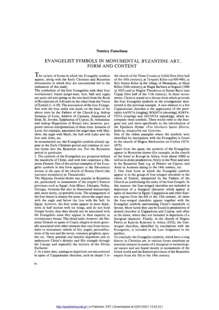 “Τα σύμβολα των Ευαγγελιστών στη βυζαντινή μνημειακή τέχνη. Μορφή και περιεχόμενο”