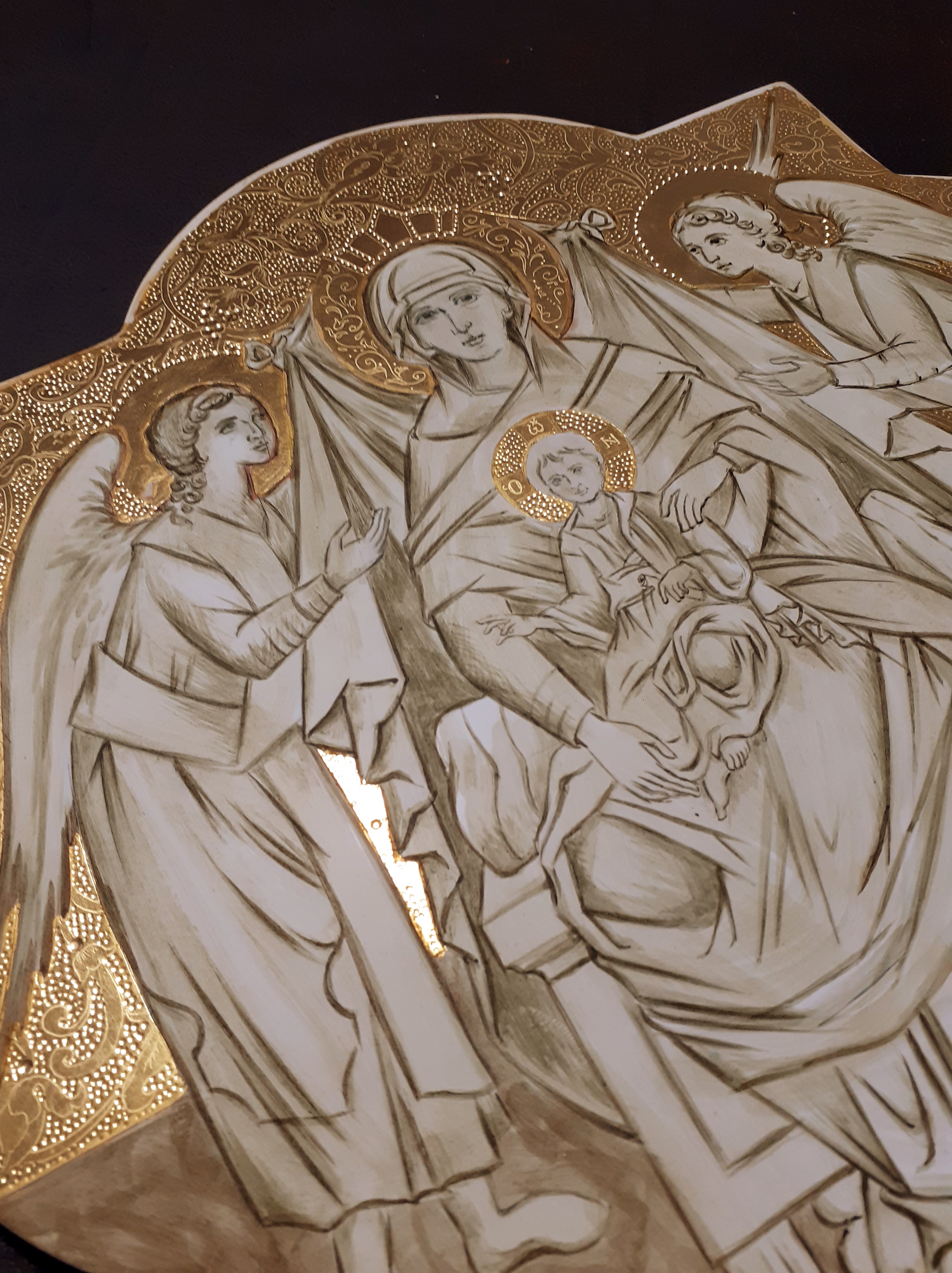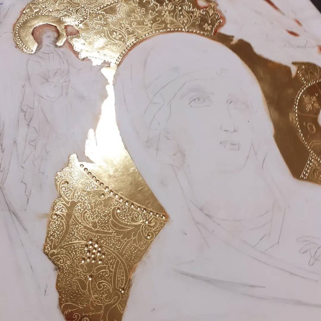 We will learn how to achieve a very shiny golden background, how to transfer the design and several techniques to create designs on the gold. We will also learn how to work without damaging the gilded surface.