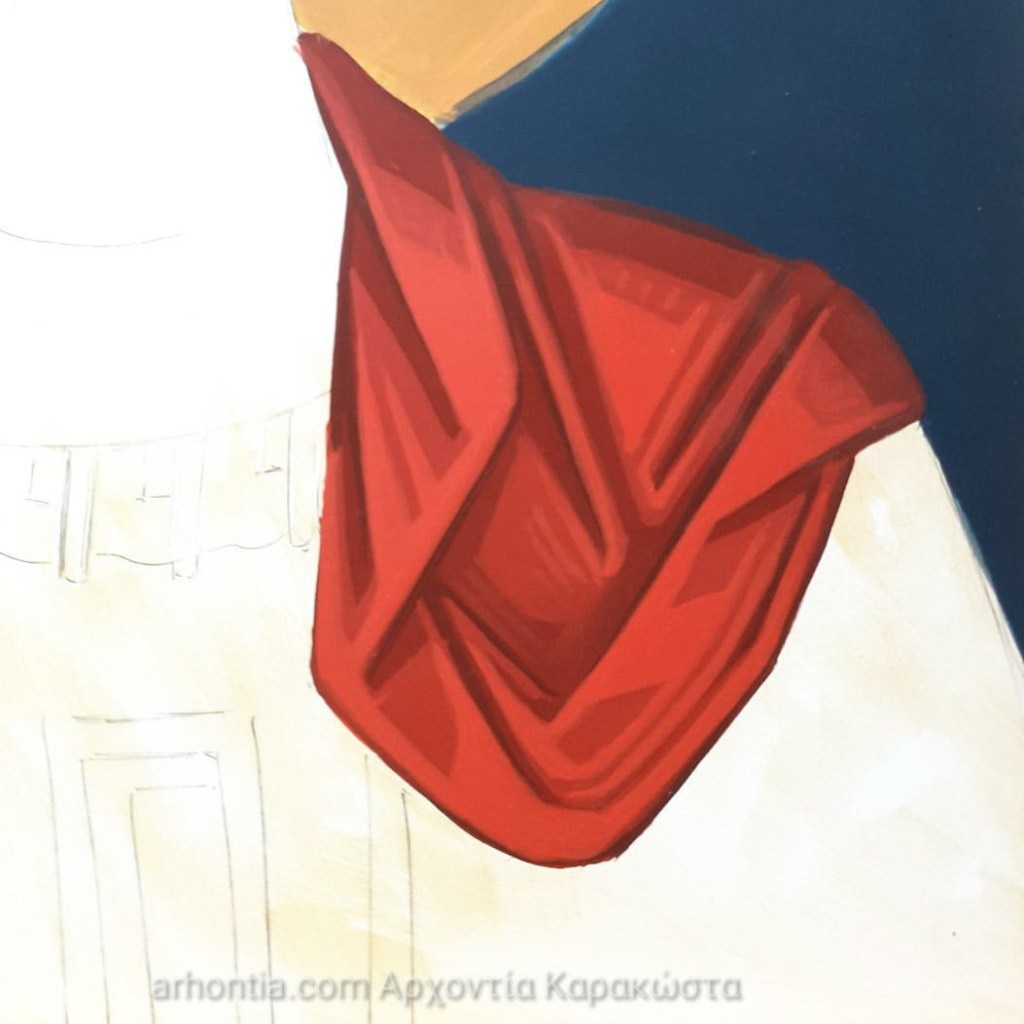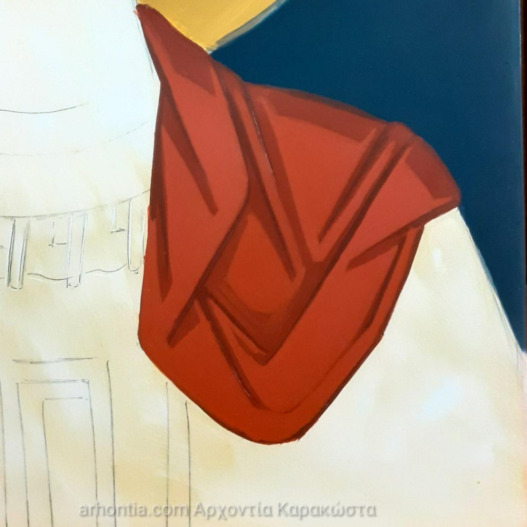 Φυσικά αυτός δεν είναι ο μοναδικός τρόπος να δουλέψουμε με κόκκινα, είναι όμως αυτός που θεωρώ πιο εύκολος για να ξεκινήσετε. Είναι ένα πολύ ωραἰο χρώμα για οποιοδήποτε κόκκινο ένδυμα και ειδικά για τα κόκκινα ενδύματα του Χριστού και της Θεοτόκου, καθώς και για τον κόκκινο μανδύα του Αρχάγγελου Μιχαήλ, του Αγίου Γεωργίου, μαρτύρων κλπ. Ελπίζω αυτό το άρθρο να σας φανεί χρήσιμο στις μελέτες σας, μη διστάσετε να μου γράψετε τη γνώμη σας ή τυχόν ερωτήσεις στα σχόλια