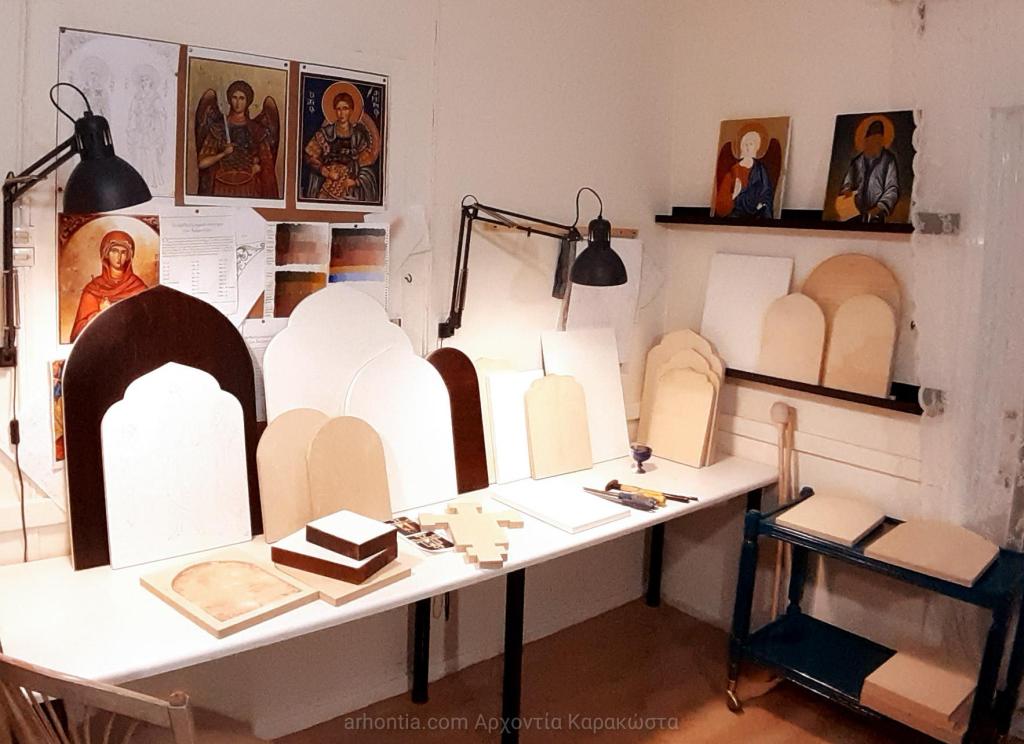 Τον Νοέμβριο 2023 στο εργαστήριο, η Αρχοντία Καρακώστα σας δείχνει πώς φτιάχνει τα ξύλα για την αγιογραφία με την παραδοσιακή προετοιμασία. Εδώ δεν υπάρχουν “μυστικά”, μόνο χρόνια μελέτης και δοκιμών μέσω των οποίων κατέληξε στη συγκεκριμένη συνταγή και τεχνική εφαρμογής, που εξασφαλίζει άριστα αποτελέσματα σε υφή και αντοχή της εικόνας στον χρόνο.