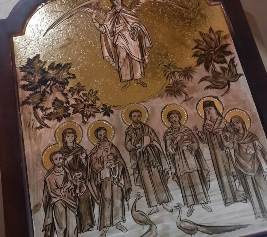 The Physician Saints | Creating a new icon (4) Μετά την υποζωγράφιση, άρχισα να προσθέτω χρώματα. Πρώτα δούλεψα με λεπτές ημιδιαφανείς στρώσεις χρωμάτων το φόντο, και κατόπιν άρχισα να δουλεύω τα ενδύματα. Στη συνέχεια ολοκλήρωσα τα πρόσωπα προσπαθώντας να αποδώσω την έκφραση του κάθε ενός. Άφησα για το τέλος τα ελάφια, τα πουλιά και τα λουλούδια, ώστε να βλέπω τη συνολική εικόνα με όλα τα … Continue reading Οι Άγιοι Ιατροί | Δημιουργώντας μια νέα εικόνα (4)