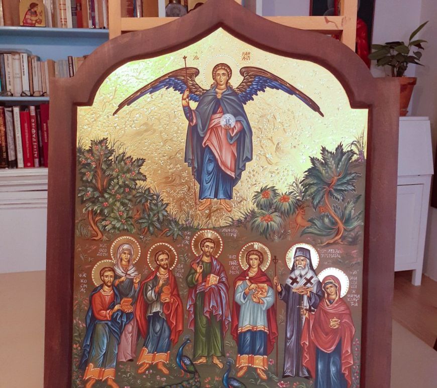The Physician Saints | Creating a new icon (4) Μετά την υποζωγράφιση, άρχισα να προσθέτω χρώματα. Πρώτα δούλεψα με λεπτές ημιδιαφανείς στρώσεις χρωμάτων το φόντο, και κατόπιν άρχισα να δουλεύω τα ενδύματα. Στη συνέχεια ολοκλήρωσα τα πρόσωπα προσπαθώντας να αποδώσω την έκφραση του κάθε ενός. Άφησα για το τέλος τα ελάφια, τα πουλιά και τα λουλούδια, ώστε να βλέπω τη συνολική εικόνα με όλα τα … Continue reading Οι Άγιοι Ιατροί | Δημιουργώντας μια νέα εικόνα (4)