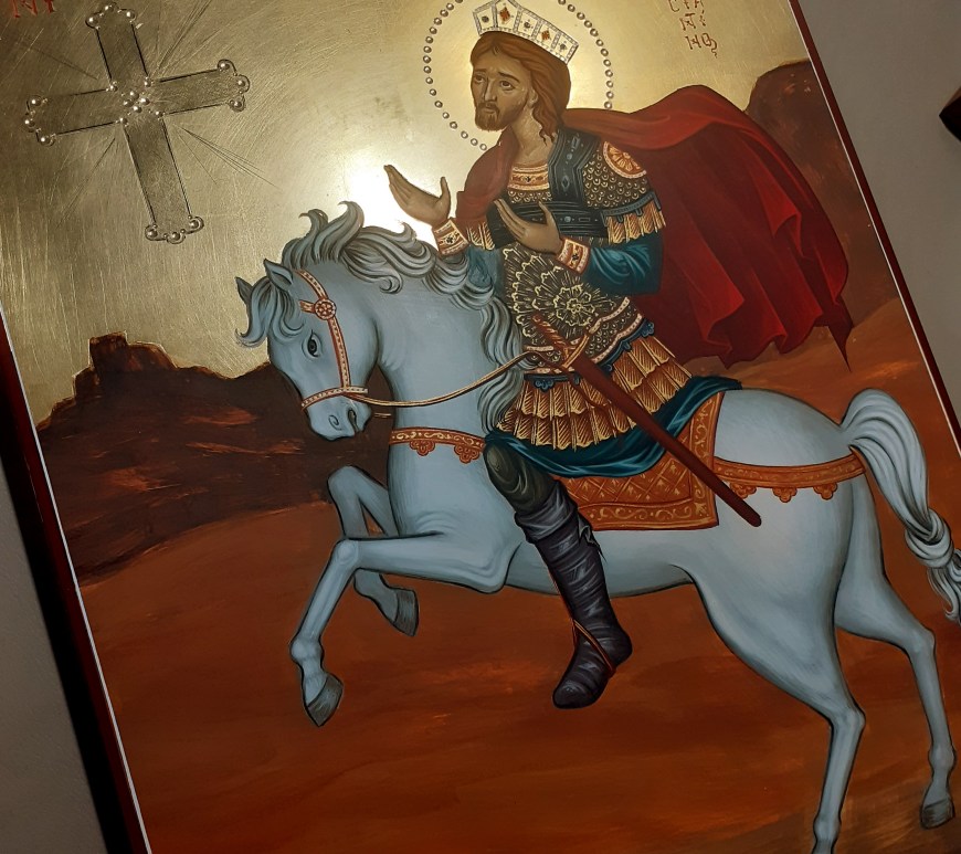 Αυτή η εικόνα είναι ζωγραφισμένη με αυγοτέμπερα πάνω σε ξύλο – μια τεχνική αρχαία που χρησιμοποιείται στην αγιογραφία εδώ και αιώνες. Έχει χρυσωθεί με φύλλα χρυσού 23k και ο σταυρός έχει αποτυπωθεί με στίλβωση πάνω στον χρυσό. Οι χρυσοκονδυλιές στα ενδύματα του Αγίου Κωνσταντίνου έχουν γίνει επίσης με χρυσό. Διαστάσεις 30x40cm. Μπορείτε να τη δείτε στη μόνιμη έκθεση του εργαστηρίου μας και είναι διαθέσιμη προς πώληση. … Continue reading Το όραμα του Μεγάλου Κωνσταντίνου